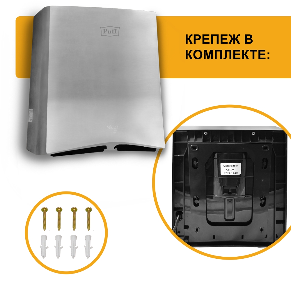 - Электросушитель для рук "Puff-8813", антивандальный, 1,25 кВт.